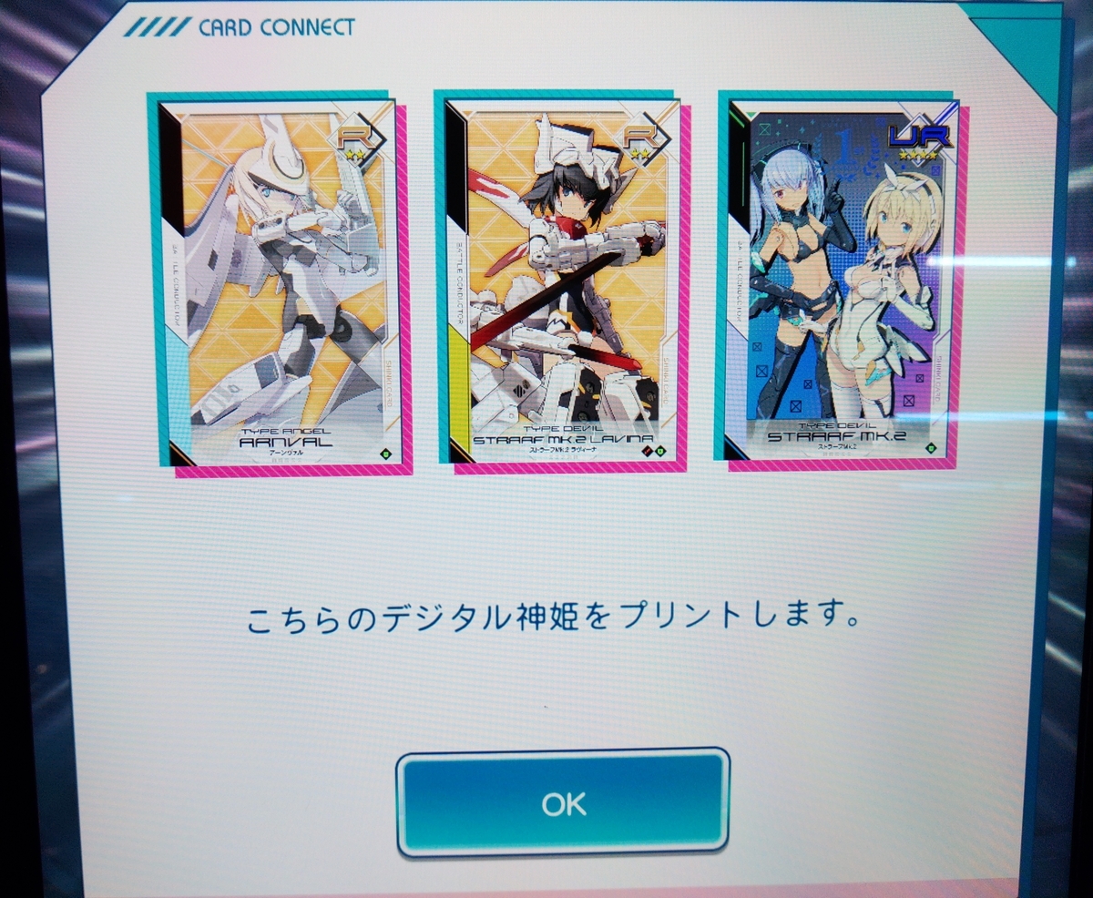 ちなみにミニゲームのプレイは必須というわけではなく(操作の制限時間内であれば)カドコネ内のガチャを眺めたり、本当に何もせずに待つのもOK。ただしカドコネ筐体の前を離れるのは避けた方がいい。折角印刷したカードを誰かに持っていかれても知らないヨ。別のゲームで時間を潰すなぞ論外である。